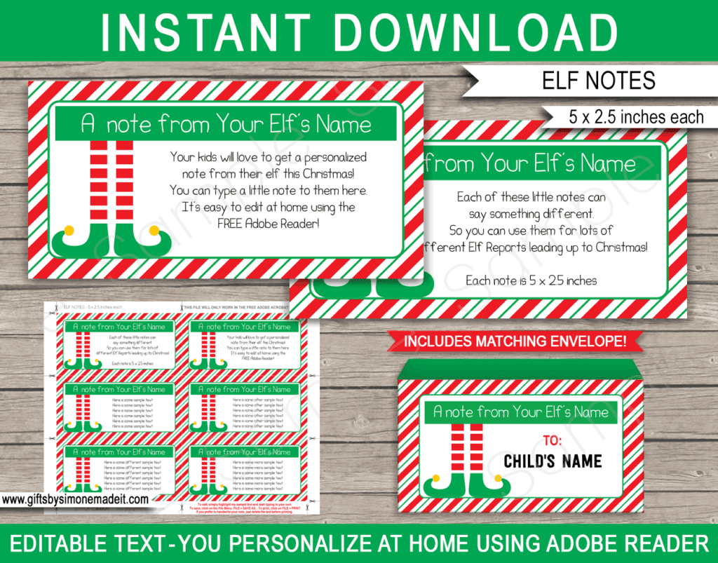 What’s Editable: All text on these Elf notes is editable using Adobe Reader.